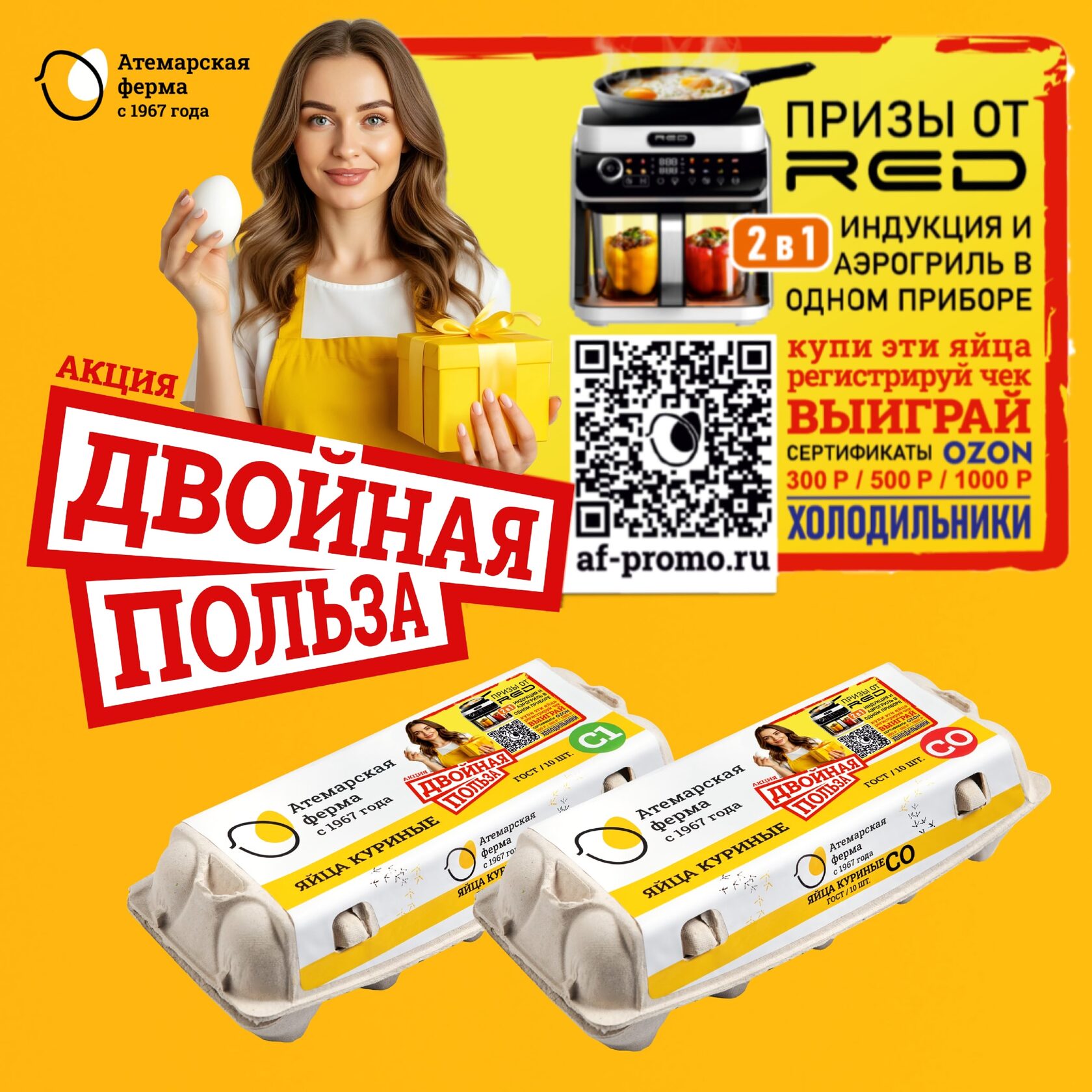 Купите яйца "Атемарская ферма" в акционной упаковке в любом магазине вашего города